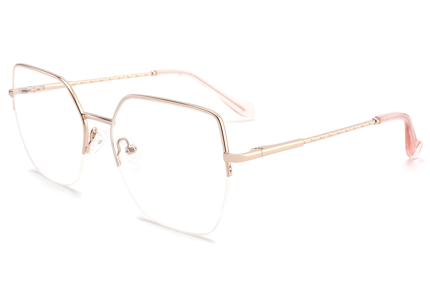 Refine your everyday look with these sleek metal glasses, designed for women who appreciate elegance with a modern edge. The geometric shape and soft pink arms create a stylish contrast, while the spring hinges ensure a comfortable, secure fit all day long.